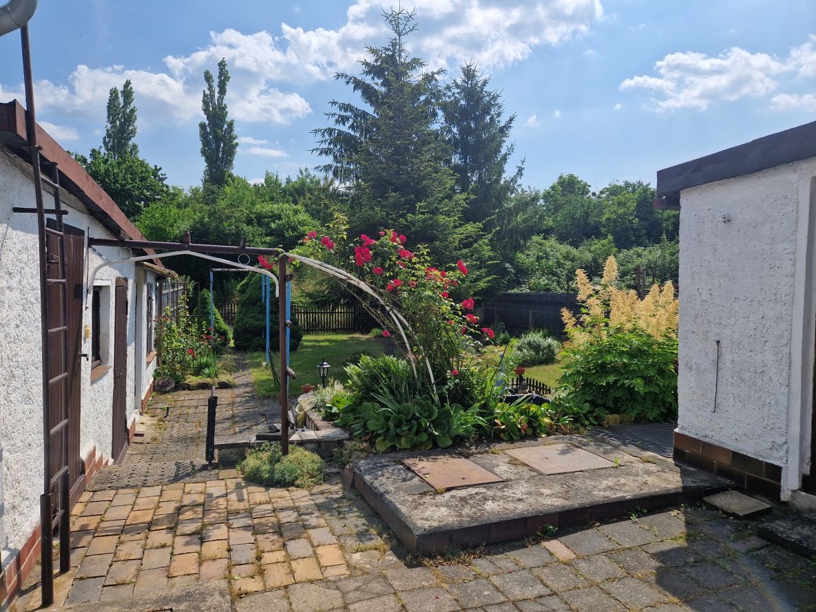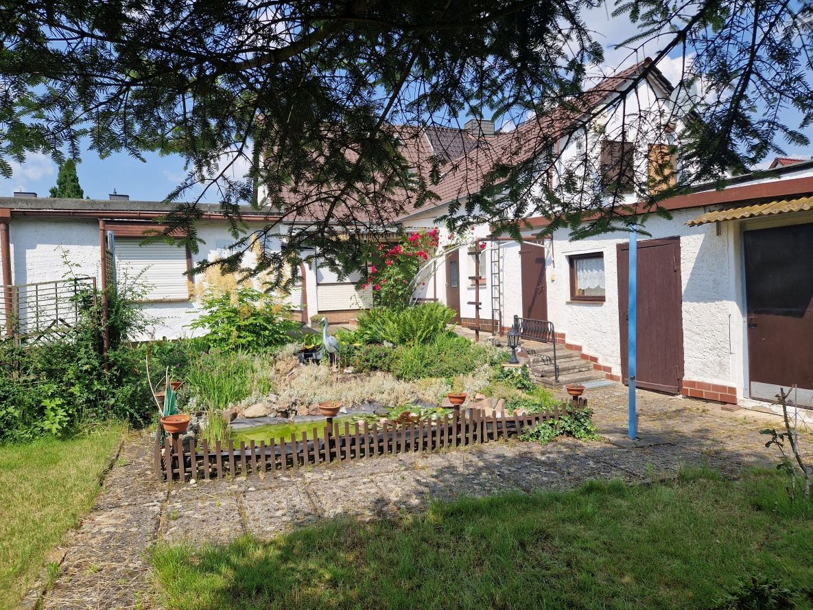 Im Anbau des Wohnhauses gibt es in der unteren Etage einen Raum, der bisher als Waschhaus genutzt wurde. Drei weitere Räume, die sich für Abstellzwecke oder als Werkstatt eignen, findet man in dem direkt anschließenden Nebengebäude. Die Garage bietet Platz für einen Pkw, weitere Fahrzeuge können im Grundstücksbereich abgestellt werden. Das ruhig gelegene und gepflegte Grundstück ist komplett umzäunt und grenzt im hinteren Bereich an eine größere bewaldete Fläche. Hier findet man einen idealen Rückzugsort, um sich von dem Alltagsstress zu erholen, Kinder haben genügend Platz zum unbeschwerten Toben und auch die gärtnerischen Fähigkeiten können noch eingebracht werden. Eine Zisterne (ehemalige Klärgrube) sammelt das Regenwasser, und hilft Kosten bei der Bewässerung der Pflanzen zu sparen. Weiterhin gibt es einen kleinen Gartenteich, der von einer schönen Blumenrabatte umgeben ist.
