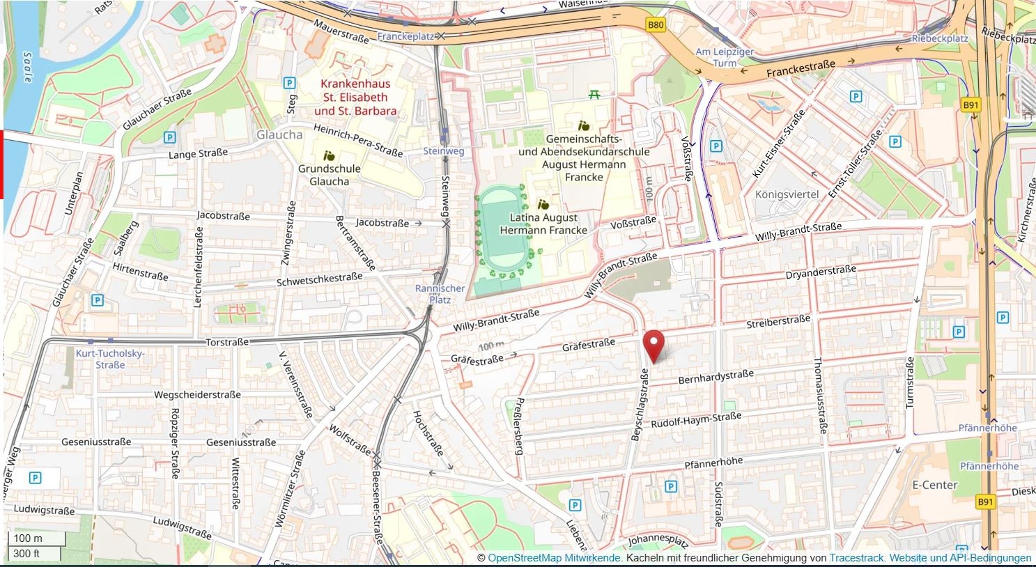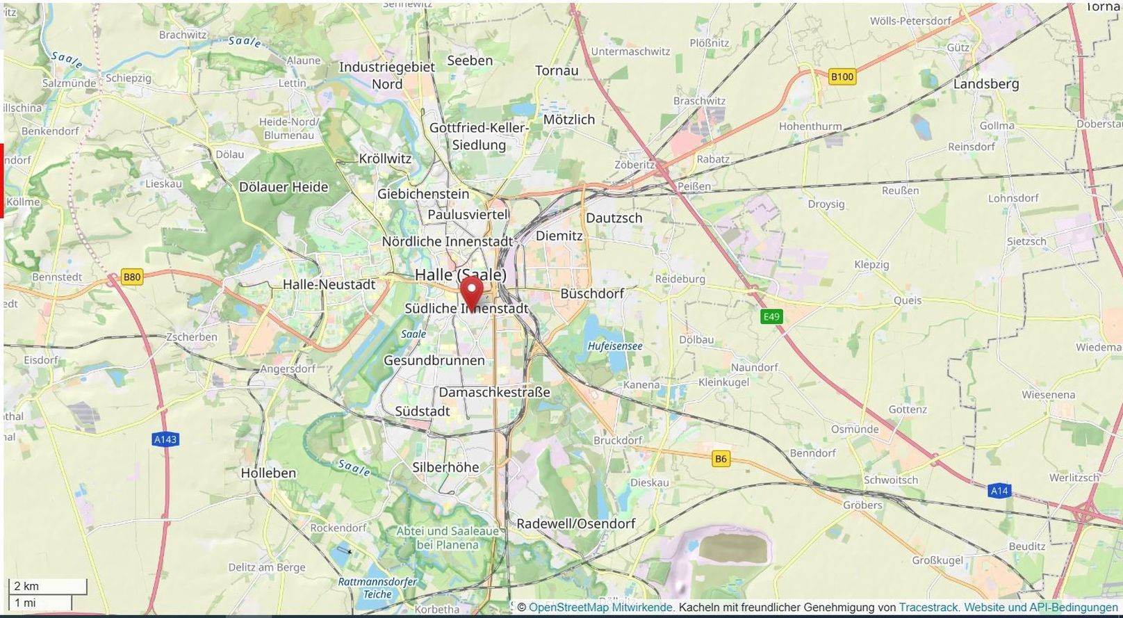 Die Immobilie ist in der südlichen Innenstadt von Halle (Saale) gelegen. In unmittelbarer Umgebung befinden sich Einkaufsmöglichkeiten, Schulen, Kindertagesstätten, Ärzte und öffentliche Verkehrsmittel. Das historische Stadtzentrum mit Marktplatz und vielen weiteren Geschäften, Ladenstraßen und gastronomischen Einrichtungen ist vor allem mit der Straßenbahn schnell zu erreichen.