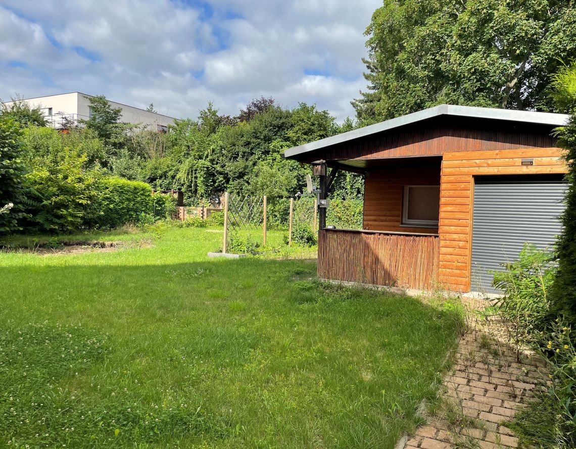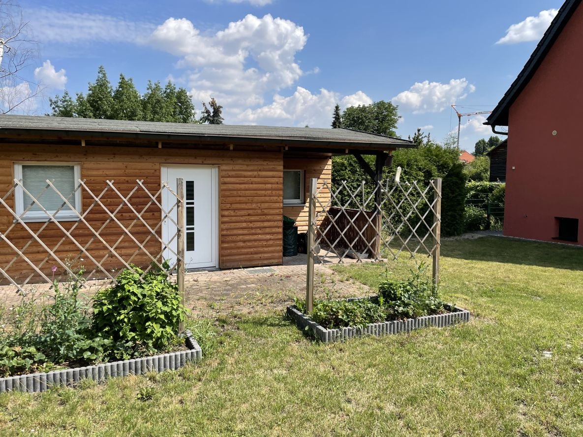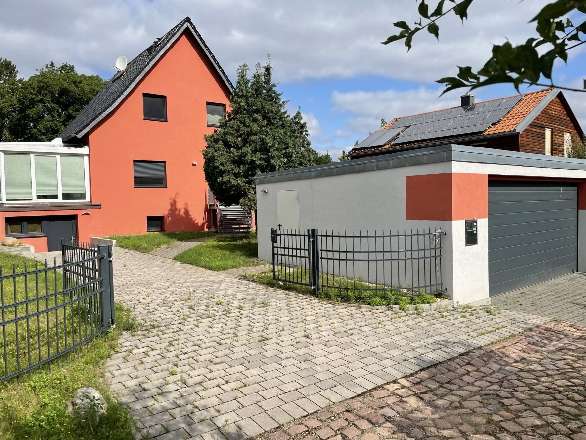 Das großzügige und vollständig umfriedete Grundstück bietet im vorderen Bereich eine gepflasterte Einfahrt mit Pkw-Stellplatz und einer angrenzenden Doppelgarage. Auf dem Grundstück hinter dem Einfamilienhaus befindet sich ein geräumiges Gartenhaus mit Rolltor, welches man vielseitig nutzen kann z.B. als Geräteschuppen oder auch als Hobbyraum.