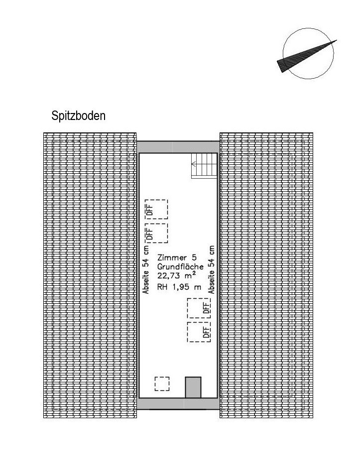 - zwei Zimmer, wobei man von einem Zimmer über eine attraktive Stahl-Holztreppe zum voll ausgebauten Spitzboden gelangt