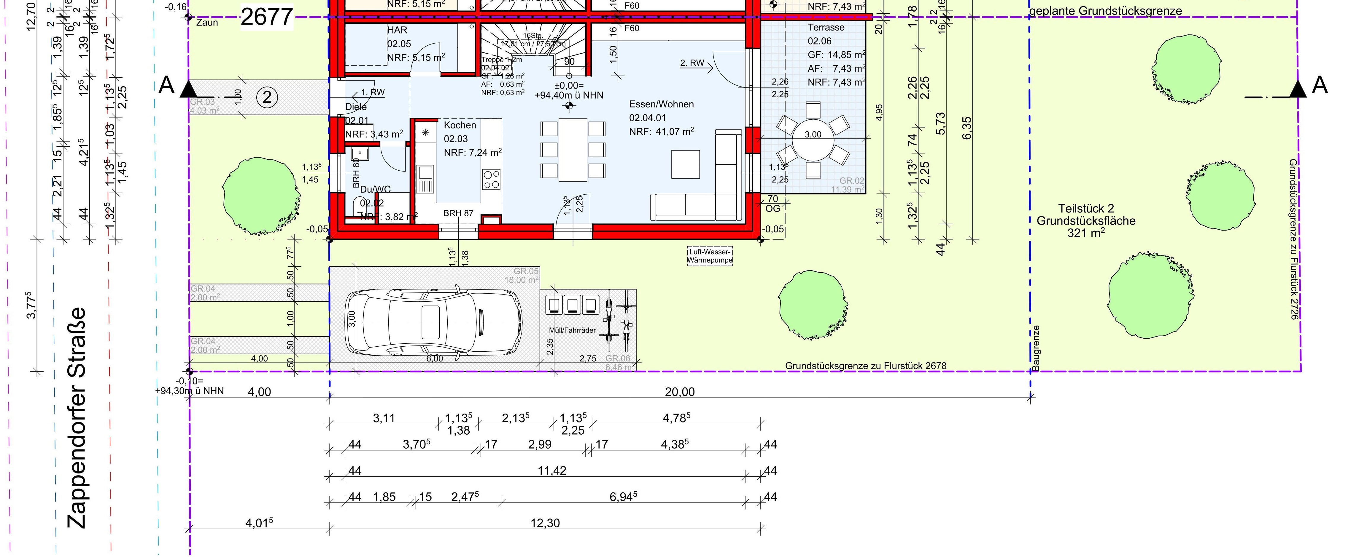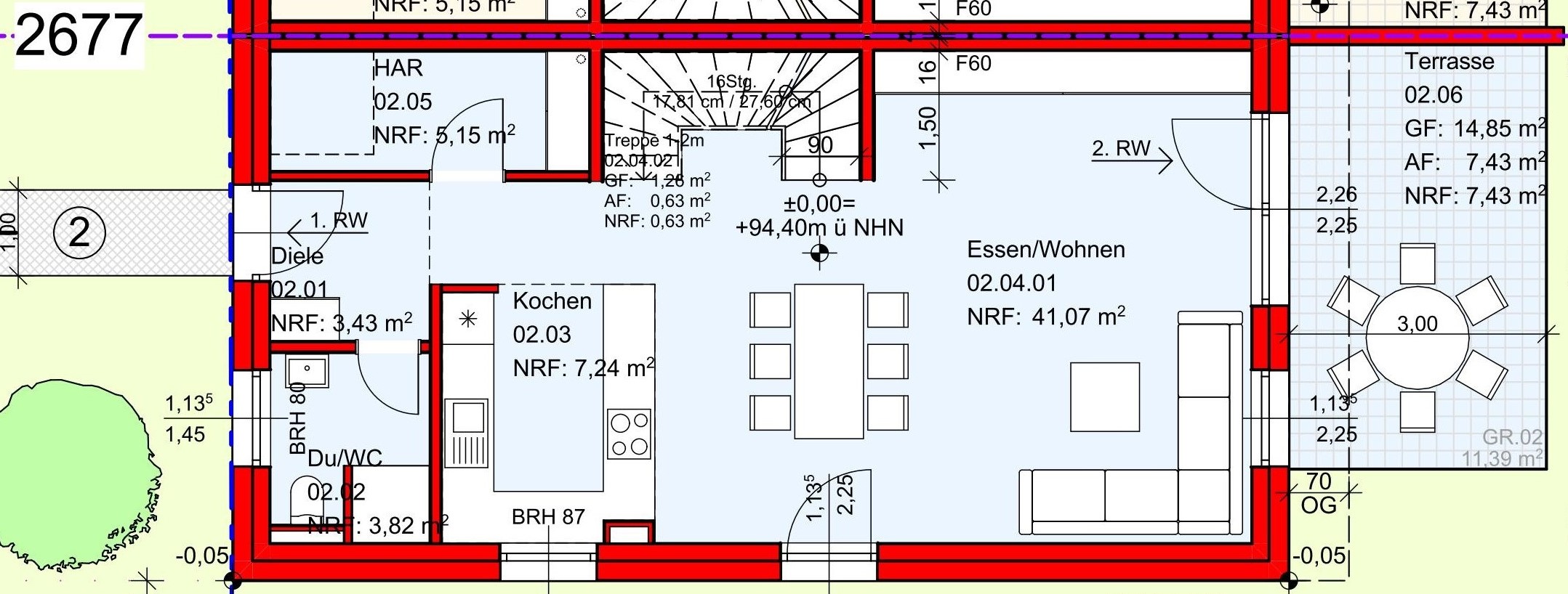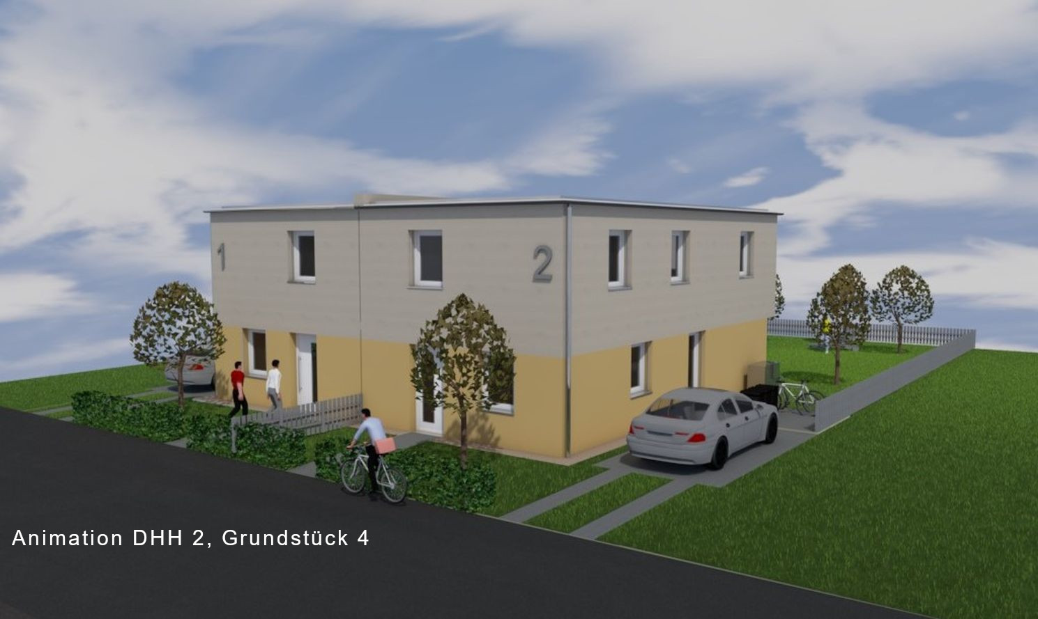 Dieses Angebot bezieht sich auf die Doppelhaushälfte 2 auf dem Grundstück Nr. 4 (siehe Gestaltungsplan). Das Gebäude mit ca. 130,65 m² Wohnfläche wird massiv auf einem ca. 321 m² großen Grundstücksanteil gemäß Gebäudeenergiegesetz (GEG) als Standardhaus (KfW 55) errichtet. Die Doppelhaushälfte besteht aus einem modernen 2-geschossigen Baukörper mit massivem Flachdach und stellt sich wie folgt dar:
