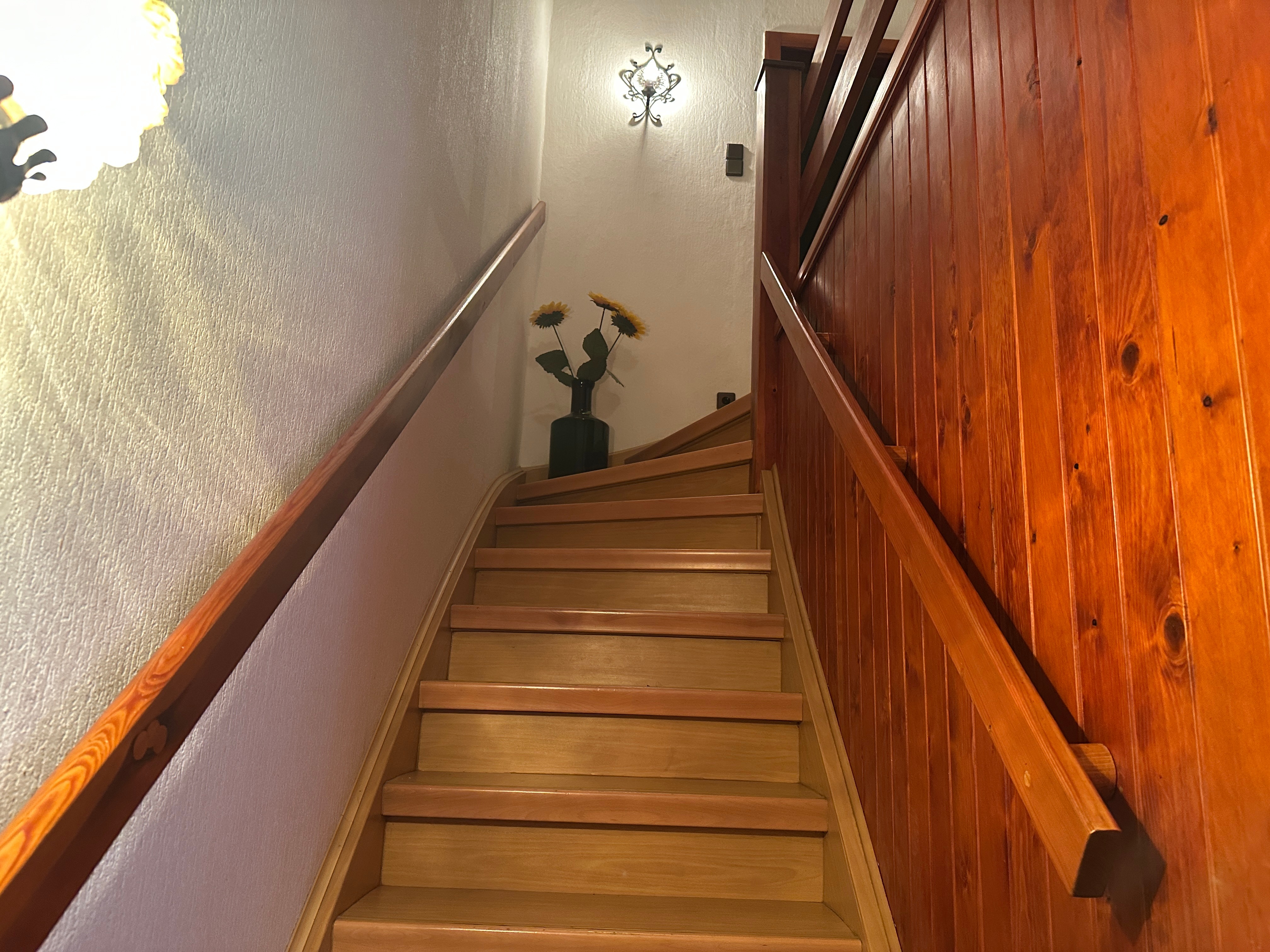 - Bad im Obergeschoss mit Dusche, Waschbecken und WC