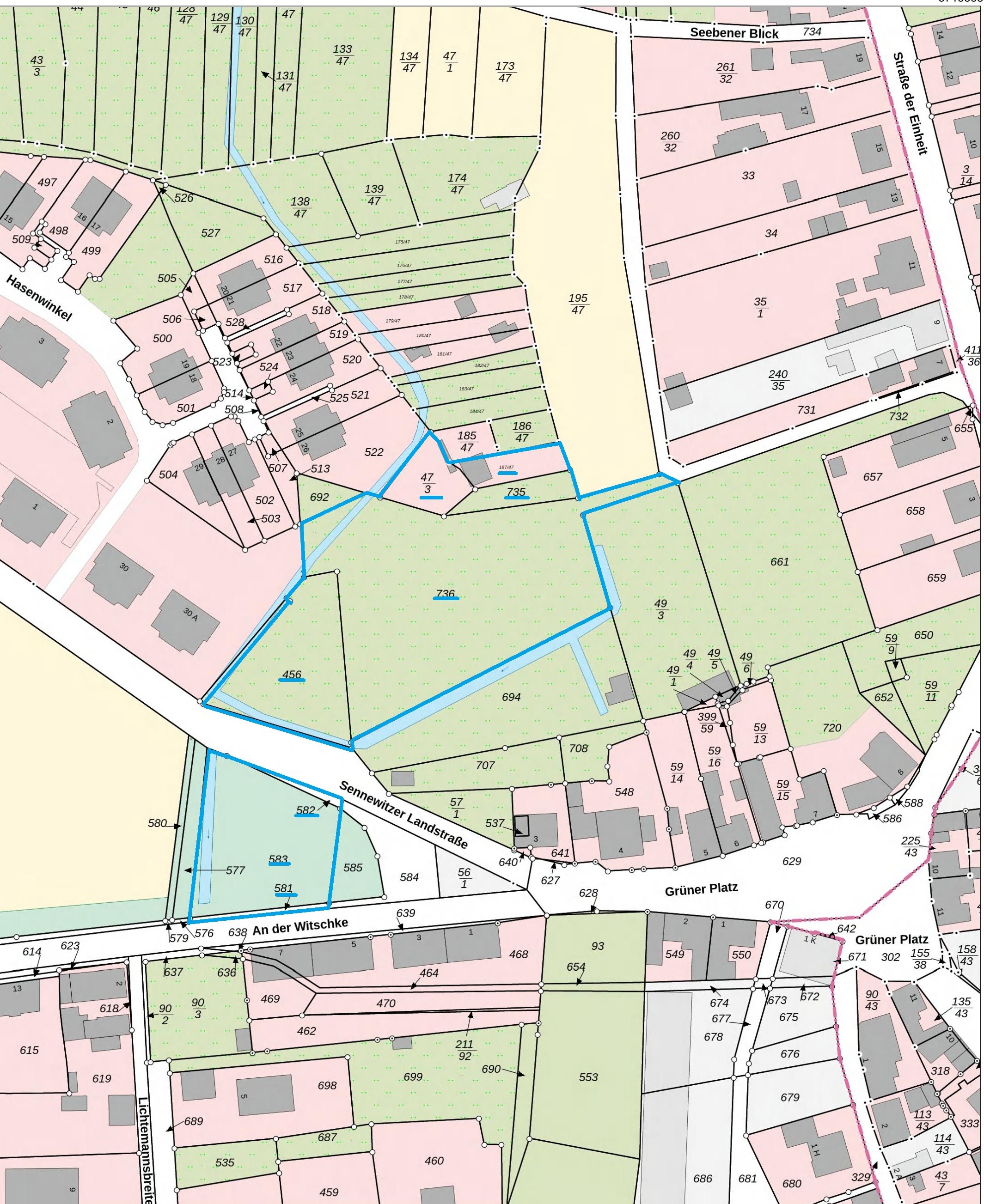 Das Grundstück ist derzeit als Grünfläche ausgewiesen. Eine bauliche Nutzung ist nach aktuellem Planungsrecht nicht vorgesehen. Etwaige Bebauungsmöglichkeiten sind vom Käufer eigenständig mit der zuständigen Baubehörde zu klären.